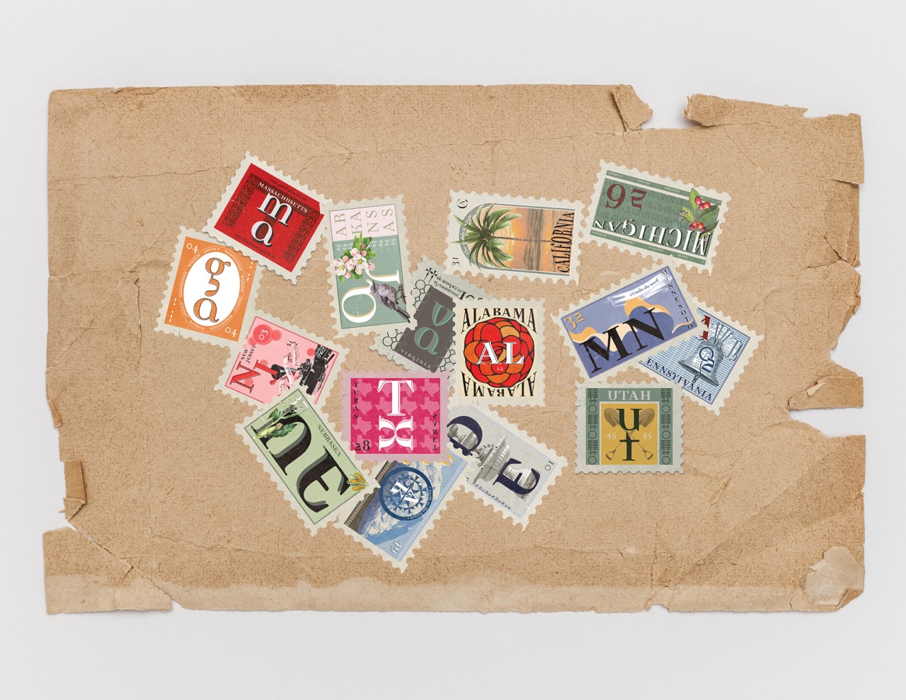 In this project, I explored the purpose and versatility of typography by showcasing the range of Democratica OT. To demonstrate the typeface's adaptability, I designed a series of postal stamps dedicated to various U.S. states. Each stamp features carefully chosen colors, text, graphics, and images inspired by state symbols and history. Some designs even include hidden codes and glyph-based graphics, capturing the adventurous energy I experienced while working with this typeface.